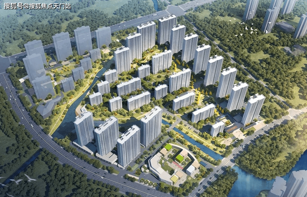 项目南靠约10万㎡的城市中央公园,“湘几漾湿地公园”。湘几漾的支流向北延伸,将项目不规则地一分为二。