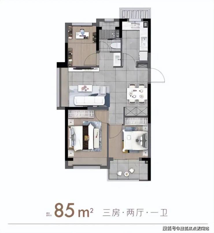 当这个城市的刚需者,也想博弈一套3房。国贸鹭原是用建面约85平方米户型,保留了初心。
