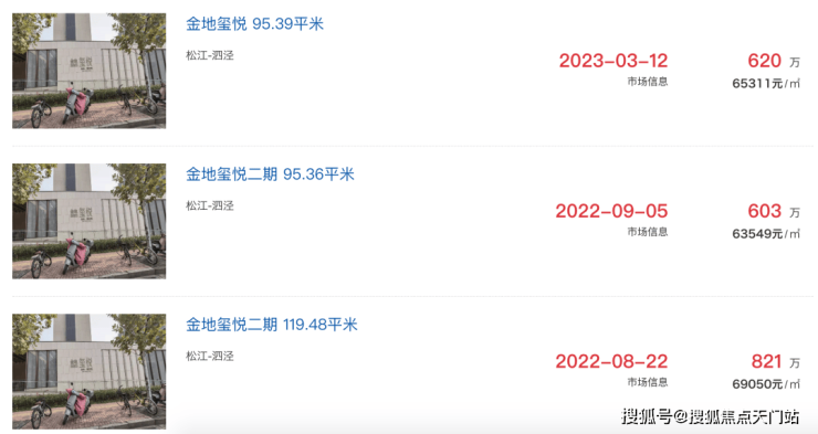 其他次新小区,比如泗泾大盘金地玺悦,二手房成交价也都在6.3-6.9万/㎡之间。