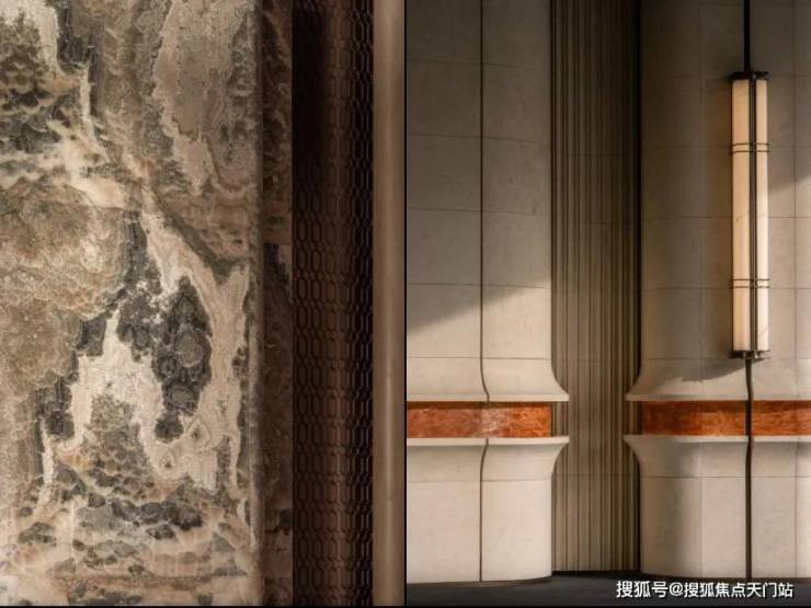 整个公区的引入沉香米黄、透光云石、安哥拉黑、福鼎黑、橙皮红、宝格丽紫等近二十种全球奢石,宛如一座流动的奢石博物馆。