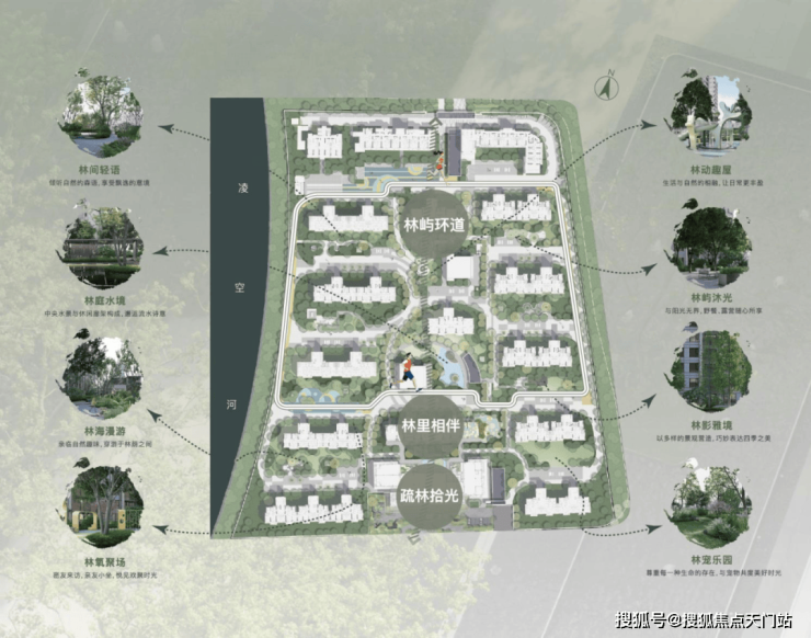 从周边配套来看,项目紧邻凌空路商办综合体TOD(规划),一线河景资源与社区相融!