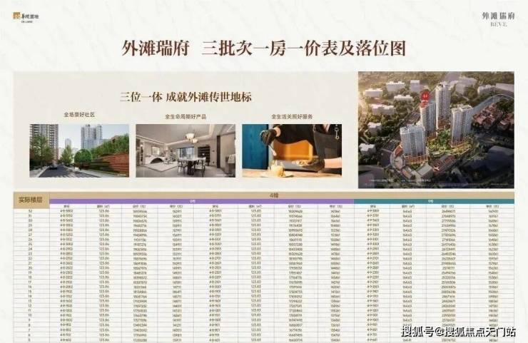 外滩瑞府二批次1号、3号楼少量续销,三批次收官之作 ,推出4号楼,建面约124-165㎡3-4房,总价约1554-2784万。(具体批次一房一价表及户型图见文末)