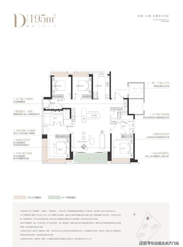 建面约195㎡4房 总价约2700-3300万