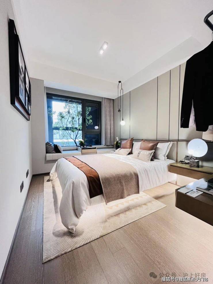 三卧室朝南、全卧室飘窗设计,实用性更强,主卧同样是270度转角飘窗设计,通风和采光效果非常不错,也丰富更多收纳可能性。