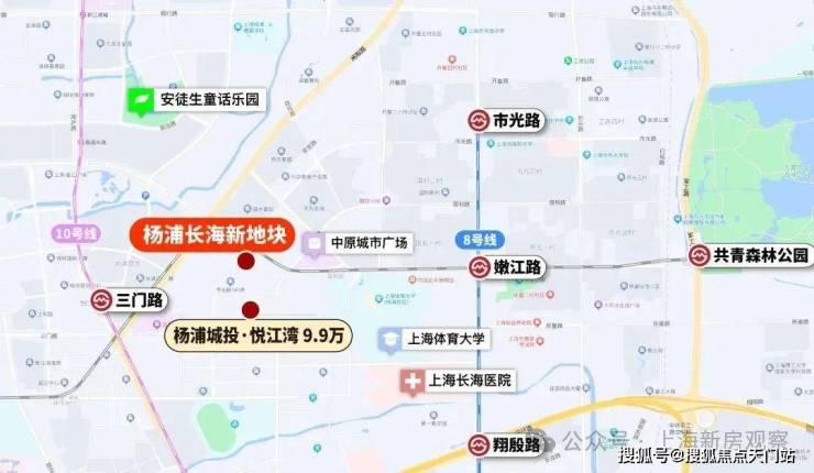 地块邻近五角场和新江湾城, 距离10号线三门路站约1公里左右!另外,项目周边还有规划中的20号线一期东段,建成后去往国和路站会更近一些。