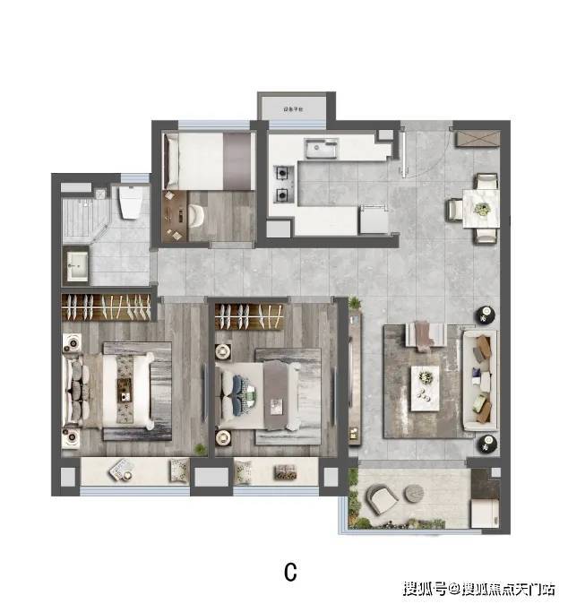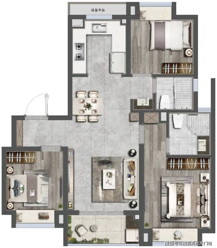 建面约88㎡三房