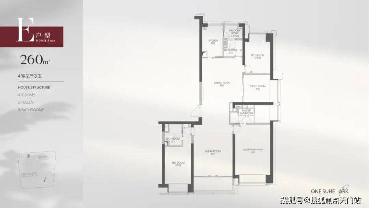 观家新房注意到,苏河湾1号原名安康苑推出的为靠后排的1号楼:此次的户型和上一期保持一致,依旧是140-170平三房、200-260平四房