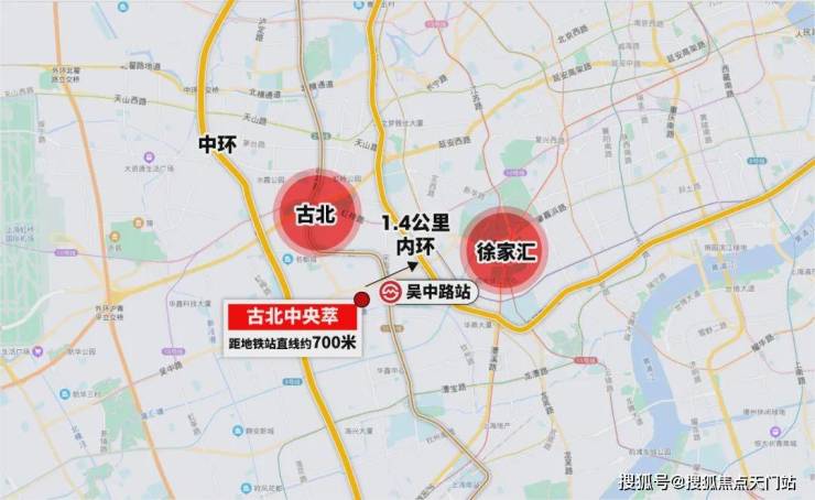 古北中央萃是纯正地铁盘,与15号线吴中路站直线距离仅约600米。