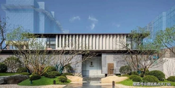 取意豫园中式园韵, 打造约99米隐奢入口空间 结合 独立的车马院,风雨廊道与人车分流独立双入口 ,带来尊贵的归家体验。
