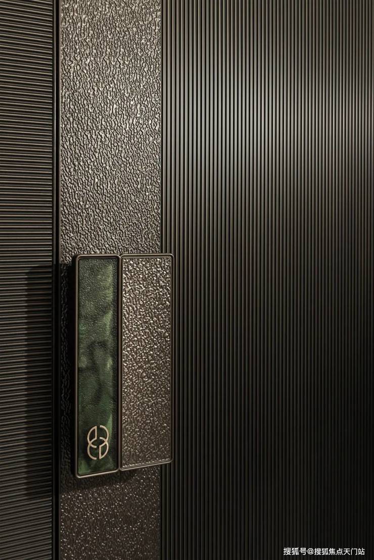 客厅背景墙的“烟雨江南”天然大理石,不同于传统平面背景墙,通过弧度及立体的造型处理,并镶嵌不锈钢材质,对于金茂而言,比奢石昂贵的,是让奢石真正与空间气场融为一体。