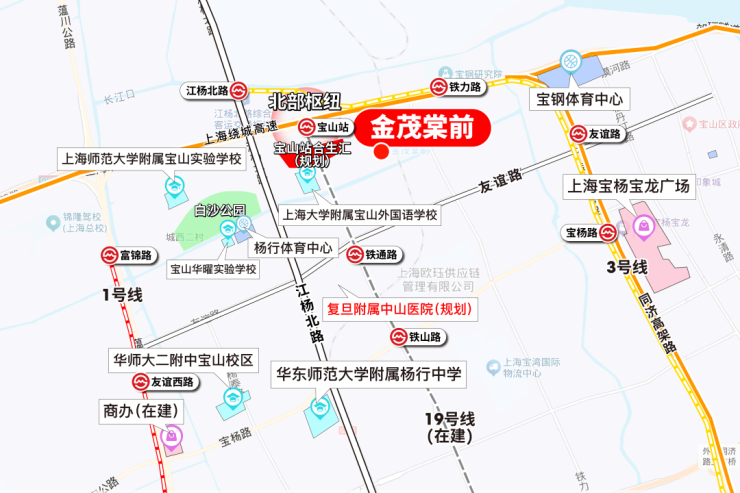 金茂棠前处于大吴淞地区正C位,站位北部枢纽+科创领航区,近享大吴淞交通、产业、配套、地标建筑等规划的利好!