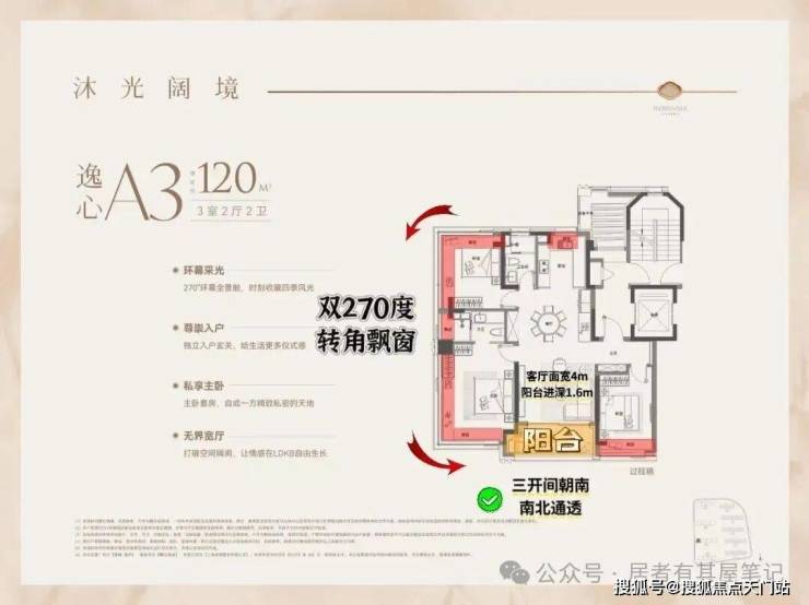 这个户型全部是类一梯一户独立电梯厅设计。四开间朝南+南北通透+全明户型+270度大飘窗,改善户型的终极之作!无论是四口之家还是三代同堂,尺度都能完全容纳。