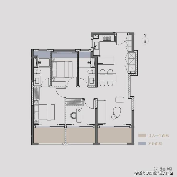 三开间朝南阳台,上海中环绝版配置!彻底粉碎百平三房“牺牲舒适换功能”的魔咒:
