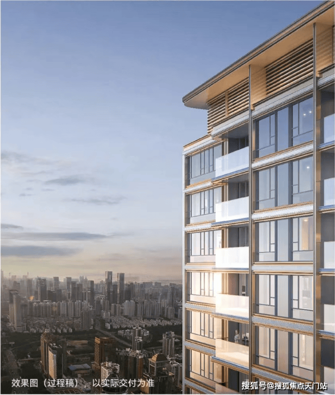 项目摒弃传统塔冠的繁复装饰, 采用天际塔冠造型,以弧美轮廓与金属铝板,在光影变幻间展现低调而奢华的质感,赋予金茂府“江湾之冠”的迭新与引领。