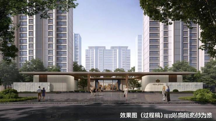 营造约 60m尺度奢阔归家门庭,通过奢石、铝板、水景、弧线等精妙组合,成就江湾显赫的府邸门面,礼遇每一次的世界归来。