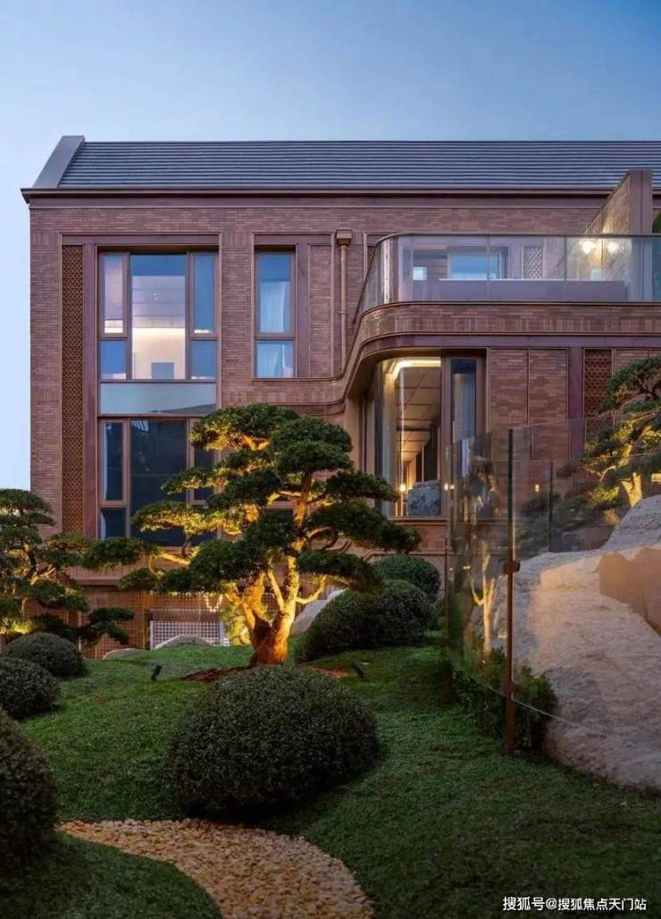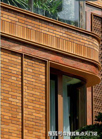 例如,在社区入户,目前已经完美呈现出来的,有强烈视觉冲击的立面大量的红砖、红洞石及大面积的落地弧形玻璃搭配的相得益彰,整个门头既有厚重的历史感,又不失极简主义的现代美。