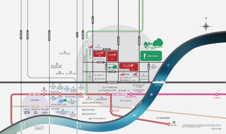 江山云樾府所在大学城北,镜像老文教的西贵源脉,历经二十载耕耘,15所大学集结了近40万的师生群体,形成了一个醇熟的大型生活住区;同时,一脉城东智造大走廊,以大学+科创的双核动力,同频杭州的国际化未来。