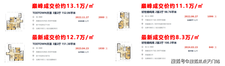 比如莘庄TODTOWN天荟, 巅峰成交价突破13.1万/㎡,如今最新成交价依旧高达约12.7万/㎡,对比初始约7.1万/㎡新房均价, 涨幅依旧高达约77.5%!