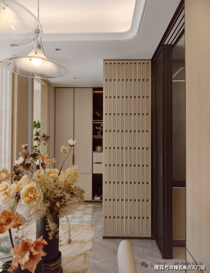 建面约110㎡三房,一进样板间,尺度感受就是阔绰的,约3.3米的层高,带来的是整个视野上的延展: