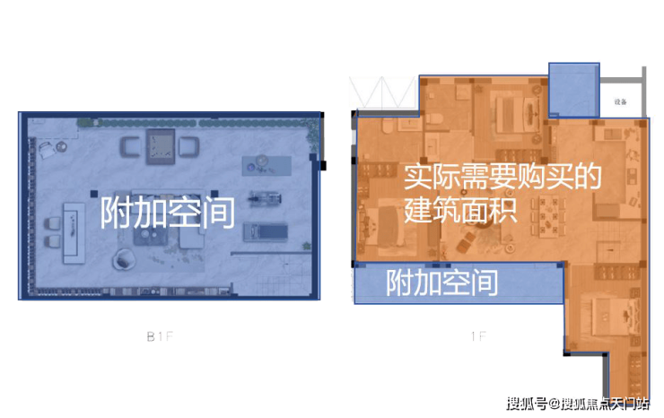 以约 98㎡的户型为例, 额外增加了 90多㎡