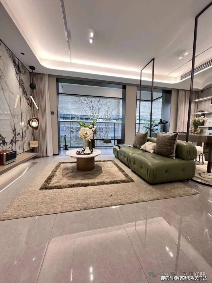 像空调新风地暖“豪宅三大件”齐备,比如中央空调甄选东芝品牌;厨具方面,采用方太的蒸烤一体机、空调油烟机,内嵌冰箱甄选卡萨帝品牌;客厅岩板背景墙也是交付标准;