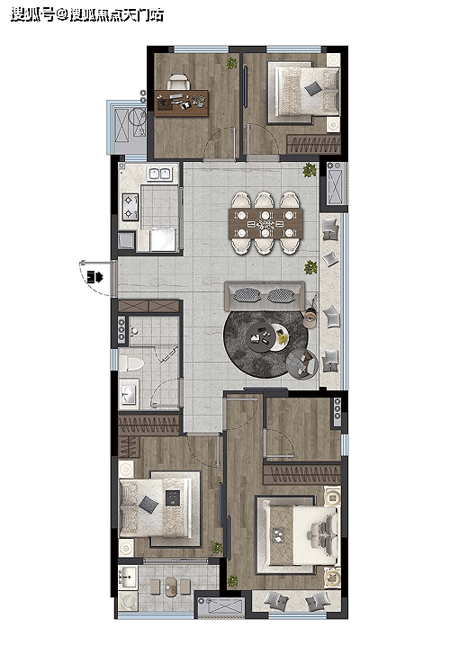 现代简约风格,整体采用“岛式围合”排列布局,创造现代的宜居型花园社区,延续建筑产品现代优雅的同时,还在建筑品质和居住环境方面进一步提升和优化,以期成为城市的新亮点。