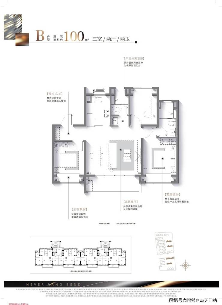 建面约100㎡宽厅三房,改善家庭至优选:在南向三开间的基础上,该户型“创新横向宽厅,营造百平米少有的客厅尺度“打造3.5南向面宽。