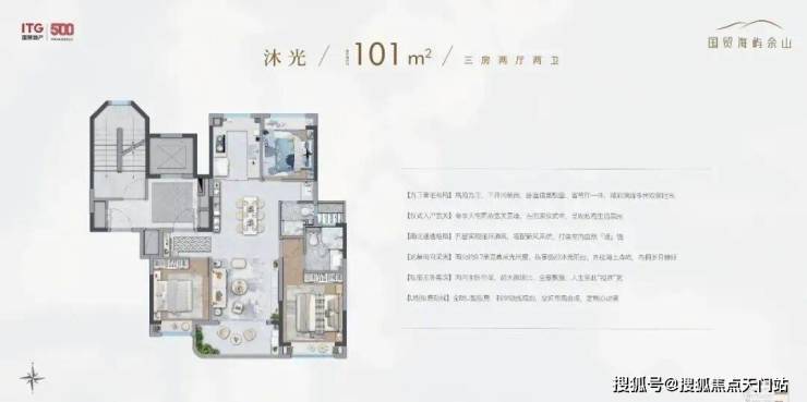 在户型规划上更是凭借小高层无连廊+飞机户型的设计优势,将室内的实际使用空间做到了最大。所以,虽然户型的建筑面积是约101㎡的3房,但整个空间的尺度感却能匹配改善型的宽绰3房。