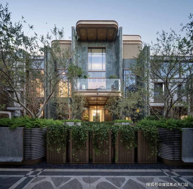 尤其是项目的 建筑立面 :巴西进口 亚马逊绿奢石 、 弧角玻璃 和 铝板 , 这样颠覆性的组合在外环别墅项目中,可以说是非常少见的存在!