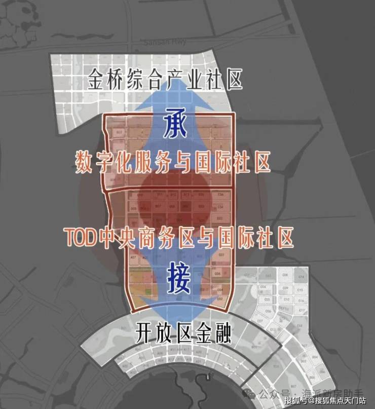 浦东新区的“联洋&碧云”国际社区,西侧“临”陆家嘴金融城,东侧“连”金桥经济技术开发区,而临港105片区数字化服务与国际社区同样北面“承”金桥研发产业,南面“接”开放区金融,两者有异曲同工之妙。