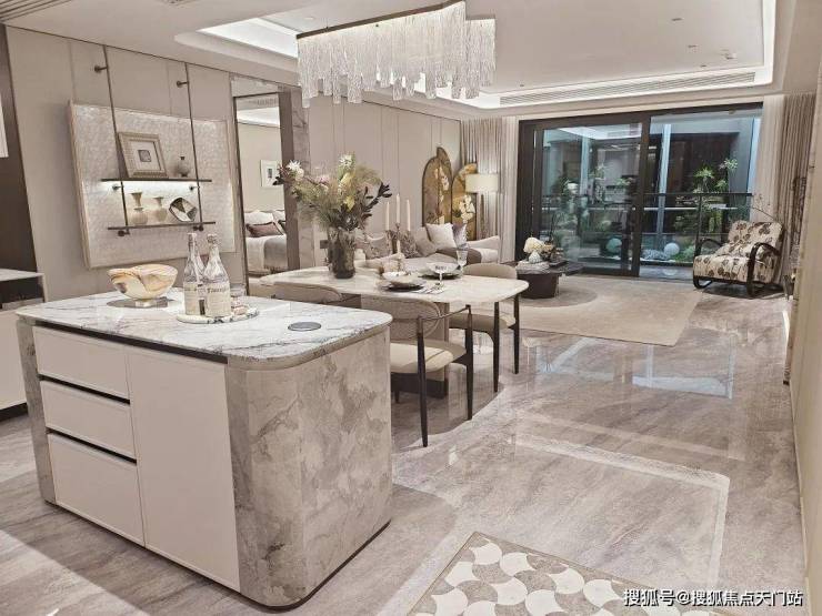 电视背景墙采用卡慕白的石材+皮革造型,弧形吊顶,相当讲究,连空调出风口的形状都打造为海上·清和玺logo山茶花的形状~~三大件为大金(或同等档次)中央空调和地暖,新风系统为百朗(或同等档次),南向阔景阳台,采光视野一级棒!