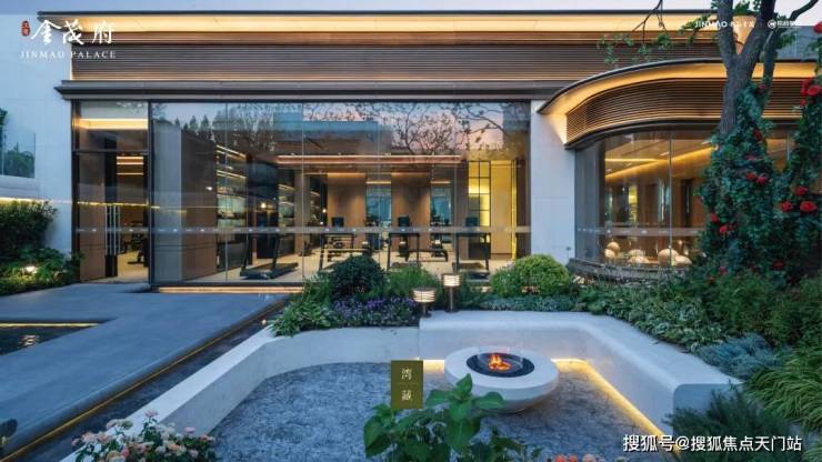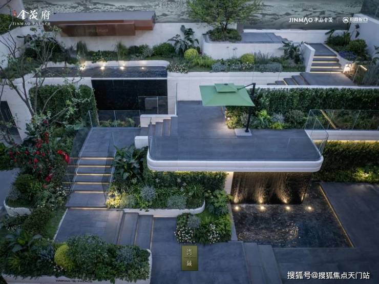 跌级水景、漫行水畔、观景平台、下沉式卡座的巧妙布局,营造出 度假酒店般的氛围。这种创新性的景观设计,不仅提升了观赏性,更大大增加了园林的实用价值。