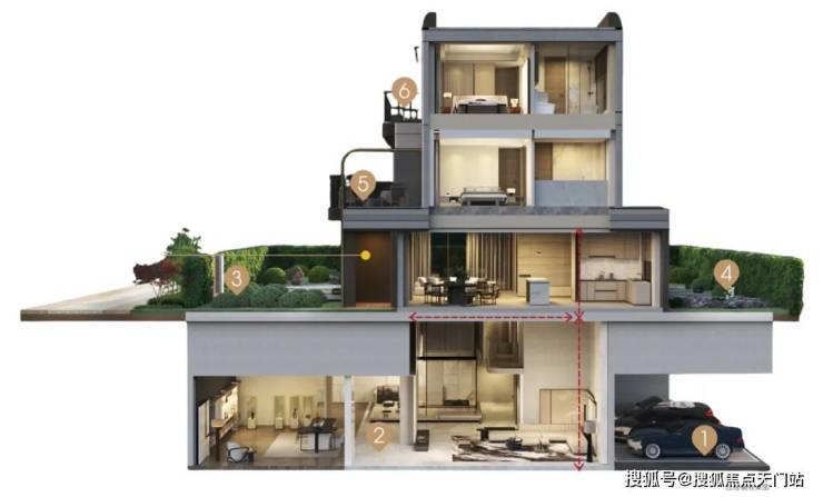 · 垂直空间:地上层高约3.1-3.5米,地下层高约5.6米,彻底告别压抑感