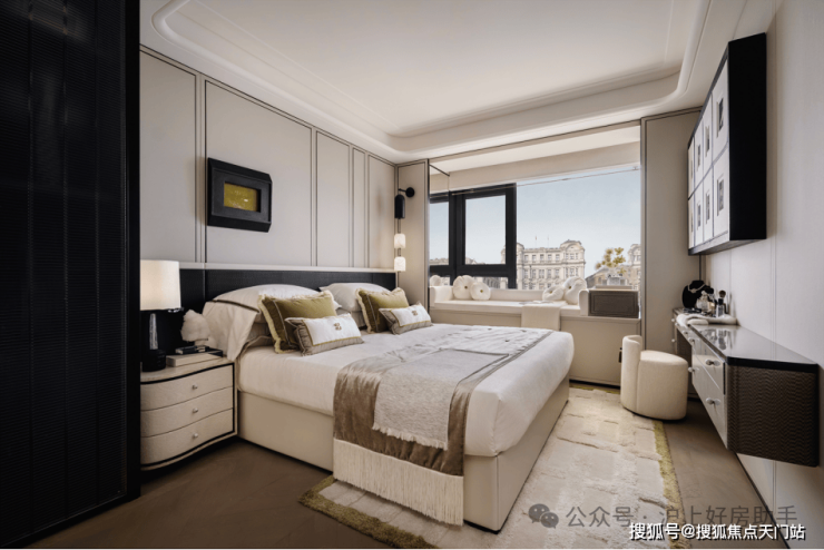 尺度 MVP :约 9米的宽幕贯通厅连接着超大的阳台,外滩天幕的繁华景色在这里成为日常;南向次卧为孩子的成长预留了足够的想象空间;北向房间面宽约 3.1米、进深约 4.15米(含 约60cm 宽景转角飘窗)的空间,彻底跳脱 “次卧即局促” 的刻板印象。无论是作为长辈房,还是书房,都能享受到与主卧同质的舒适 。