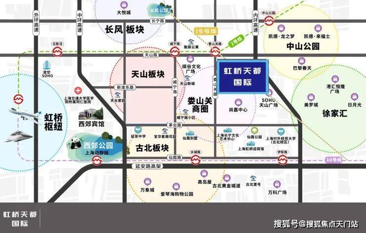 虹桥天都国际位于长宁区 · 中山公园板块,在上海西部从南到北一系列的商圈中,中山公园是一个居中的位置,又因为它的轨道交通的枢纽关系,因此来说的它其实是上海西部的一个枢纽,并且还会继续担当一个枢纽的作用。