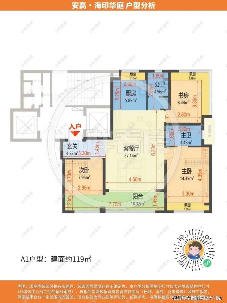 但事实上,安高·海印华庭建面约143㎡的实际使用率做到了约92.9%(小胖看房专业建筑师测算;最终面积以测绘数据为准)