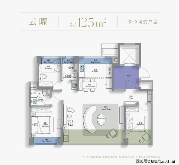 建面约125㎡3+X房2厅2卫