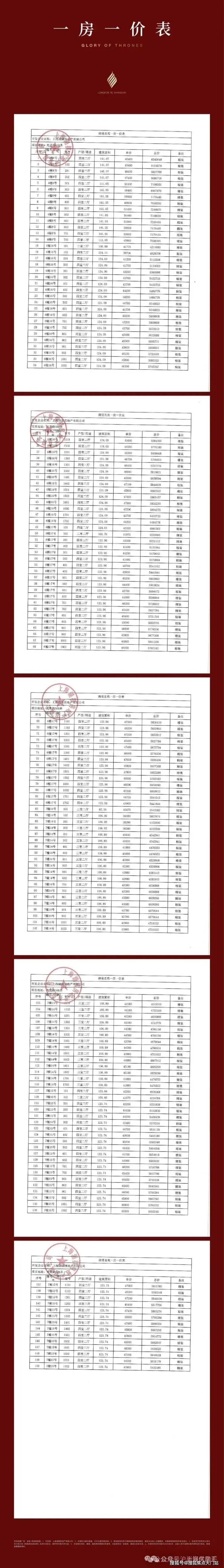 项目一房一价表: