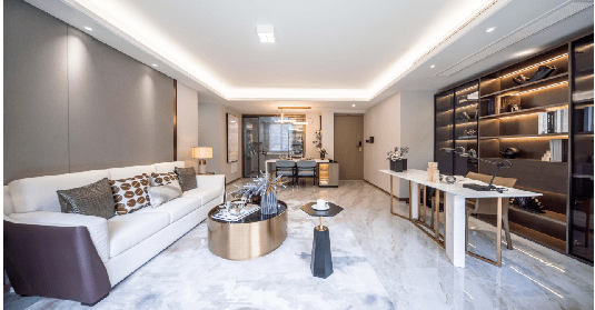 【交付标准】:海贝斯智能门锁+曼瑞德新风系统+贝雷塔地暖+美的空调+方太油烟机和燃气灶+卧室实木复合地板+墙纸