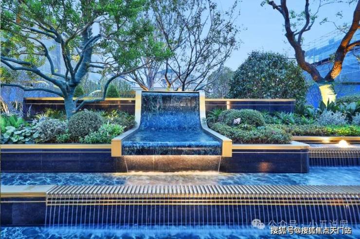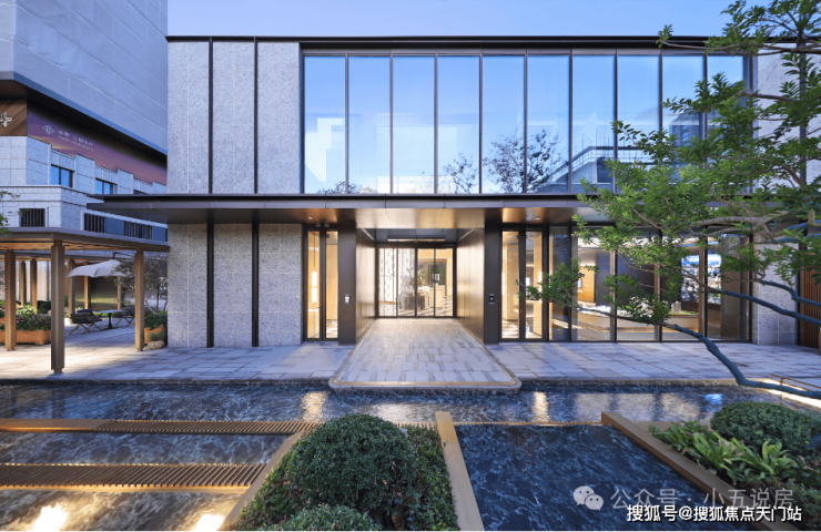 从开启酒店式门扉,到引水入园的奢石对景,再到树影繁花下的水声庭院,