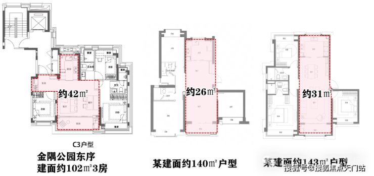 1、王炸空间,超大面宽奢阔尺度,建面约102㎡三房