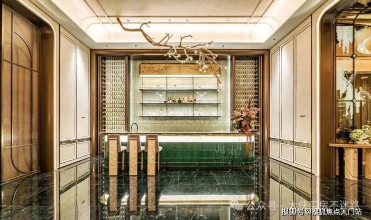 气泡花园:以 “气泡” 为灵感,取莫奈画作色系,将气泡绽裂瞬间定格于水院。以库班绿奢石为地面基底,水纹肌理搭配精工裁切,高端材质与艺术设计,臻贵奢享。