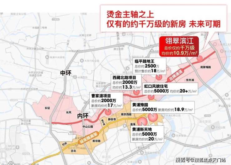 首先,从整体的环线角度来看,后续中内环的项目都在突破现有价格体系,尤其是靠近内环的各大新房: