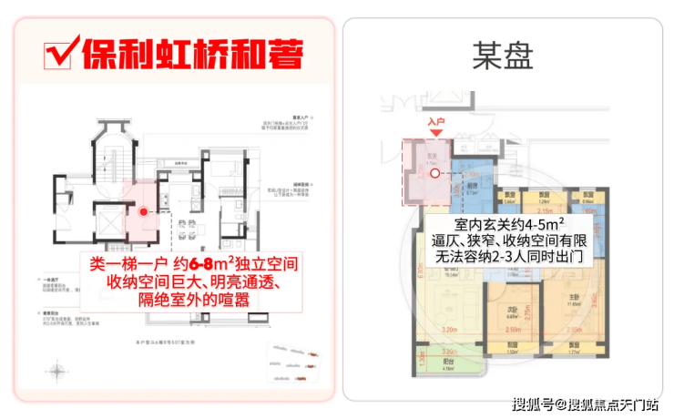 相比其他百平米3房玄关的逼仄、收纳空间少的问题,保利虹桥和著本次所有户型都做到了 类一梯一户,享全明独立电梯厅: