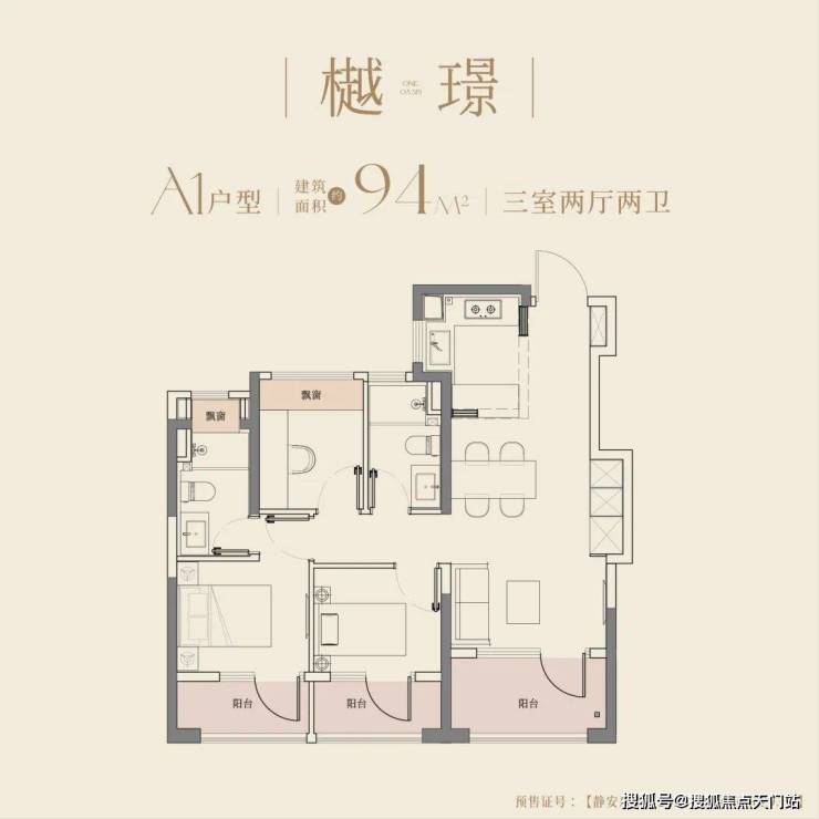94㎡三房两卫:三阳台 + 全景飘窗,最高可拓展约 19㎡