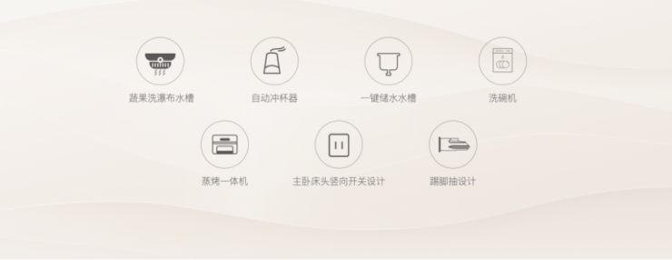 精装标准上,这次保利也是大手笔,标配博世厨电五件套(油烟机、灶具、洗碗机、冰箱、烤箱),卫浴五金配置高仪、科勒的大师款;洁具采用了唯宝等百年奢牌,奢华感与分量感十足!