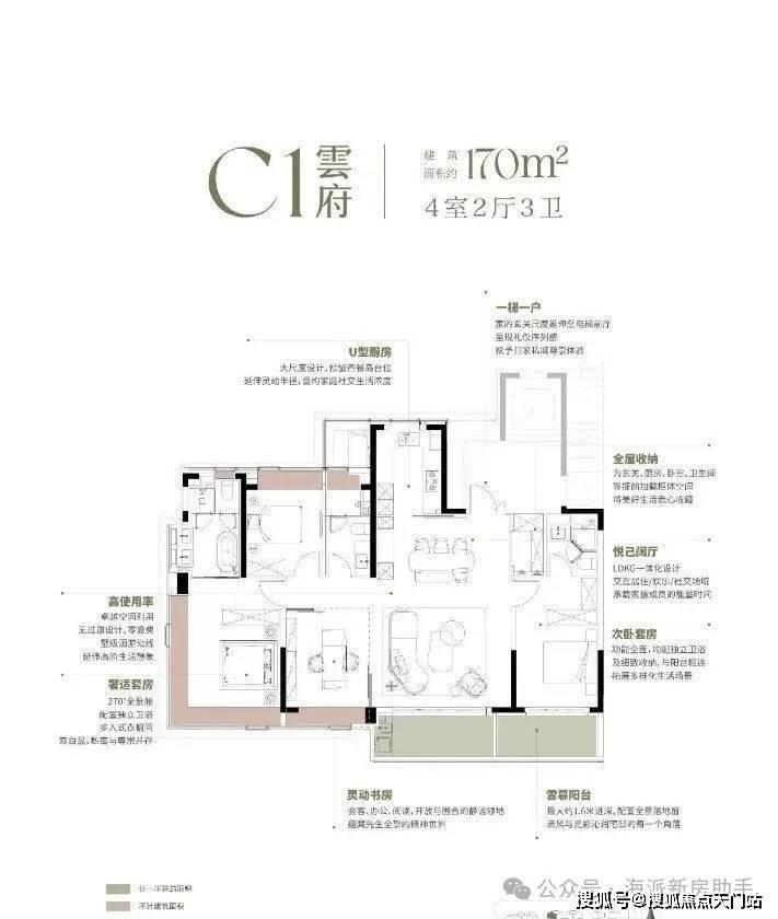 建面约113m²3房(136套)、约170㎡4房(32套)