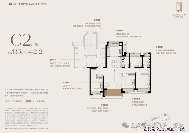 建面约135m²户型,在1100万级四房中,不仅拥有LDKB超宽客餐厅还拥有极致改善尺度!