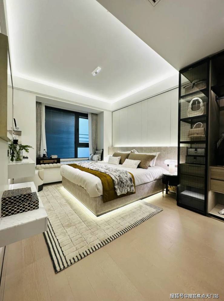 三开间朝南+大尺度景观阳台, 视野开阔,全明通透,享受四季温馨阳光。卧室飘窗设计,进行个性化的装点,成为一方专属空间。