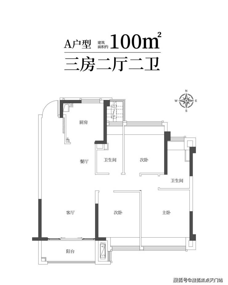 建筑面积约100㎡雅致三房两卫,满足二娃时代